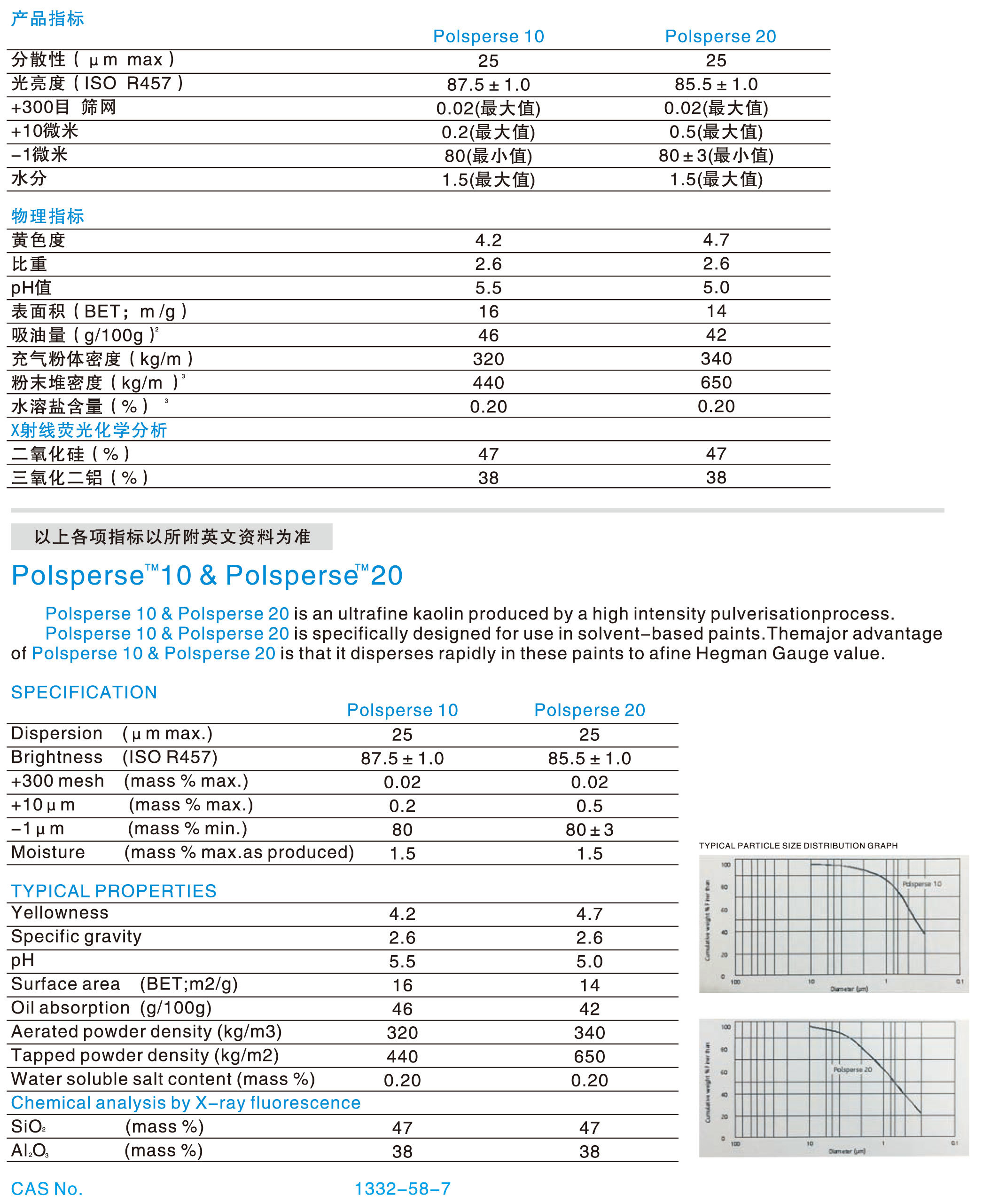 水洗高(gāo)嶺土 Polsperse T10 & Polsperse 20